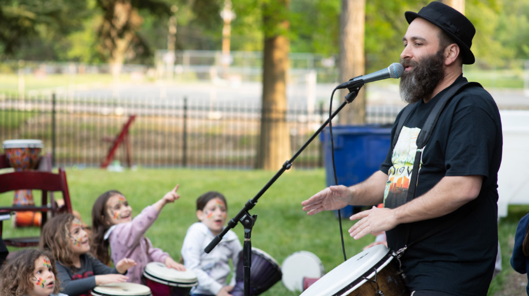 affable-looking man in his forties pulls up to the New Jersey shul’s parking lot. The trailer attached to his gray Nissan Quest is filled with 75 padded black cases, each one protecting a small hand drum. After confirming where to set up, he and his 15-year-old daughter proceed to unload the drums. They unsheathe each one, spreading them all out on the ground in a large pile to the side of what will be the performance area on this sunny weekend afternoon.