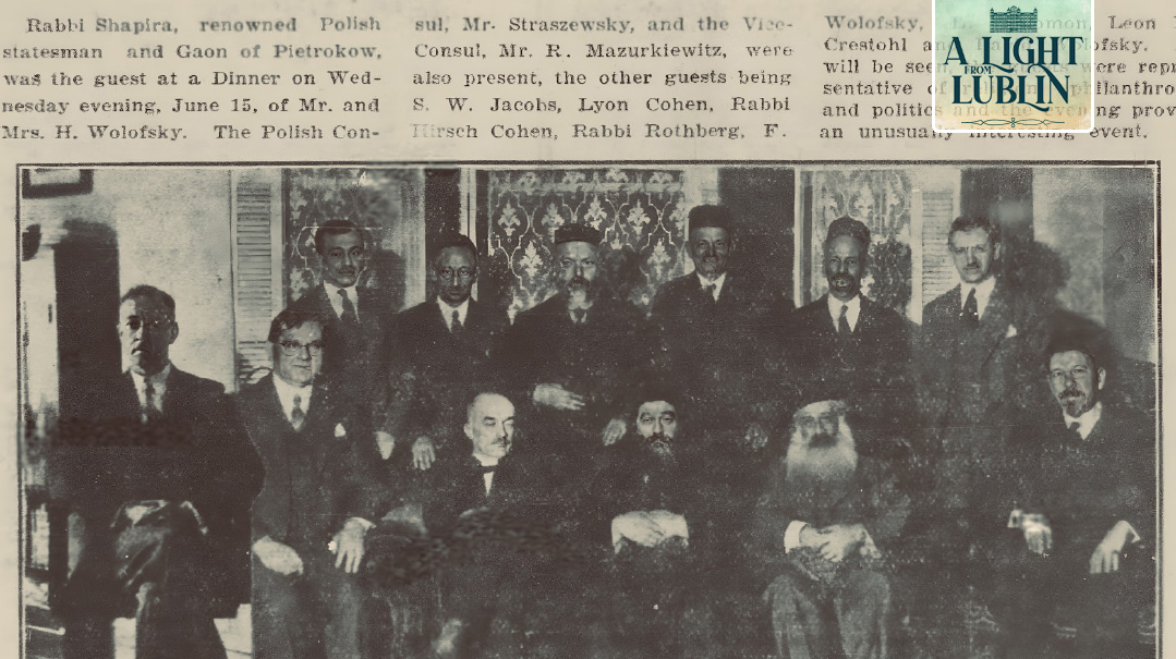 The comprehensive works and vast knowledge of the following individuals were consulted in preparation for this article: Rabbi Dr. David Slavin, Chief Rabbi Yisrael Meir Lau, Yehuda Geberer, Dr. Isaac Lewin, Rabbi Shlomo Carlebach, Rabbi Pinchas Hirschprung, Eric Feinstein, Dr. Gershon Bacon, YIVO Encyclopedia, Rabbi Dovid Avraham Mandelbaum, Aharon Sorasky, Rabbi Dovid Kamenetsky, Hillel Seidman, Rabbi Yehoshua Baumol, Alphonse Honig, Rabbi Pesach Fishman, Vivian Felsen, Rabbi Eliezer Katzman, Dr. Simcha Bunim Feldman, Yehuda Zirkind, Dr. David Kranzler, Professor Wojciech Tworek, Rabbi David Halachmi, Rabbi Moshe Weinberger, Eli Marcus, Rabbi Aharon Lopiansky, Moshe Benoliel, Zevi Brodt, Moshe Prager, Asher Korech, Rabbi Avrohom Frischman, David Lenik, Menachem Daum, Rabbi Aaron Ben-Zion Shurin, Rabbi Zev T. Paretzky, Rabbi Lipa Geldwerth, Yisroel Besser, Professor Shaul Stampfer, Reb Yosef Friedenson, Reb Sruly Bornstein, Rabbi Avrum Moshe Friedmann, Rabbi Yisroel Friedman, Rabbi Yitzchok Kasnett, Rabbi Harry Rabinowicz, Rabbi Yitzchok Dovid Flakser, Professor Gershon Bacon, Rabbi Yehuda Meir Abramowicz, Piotr Nazaruk, Sefer Zichron Meir, JDC Archives, YIVO, Rabbi Avraham Chanoch Abramowicz, Lublin Jewish Community Archives.