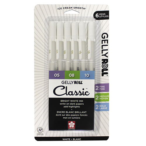 White gel pens provide the finishing dimension for portraiture — all those small details in hair and eyes come to life.