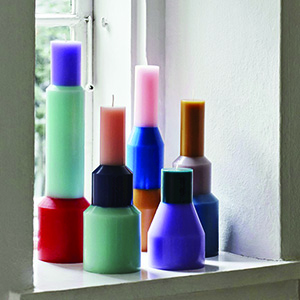 Lex Pott uses striking color combinations and staggered dimensions to create a series of candles with a distinctive and playful design.
