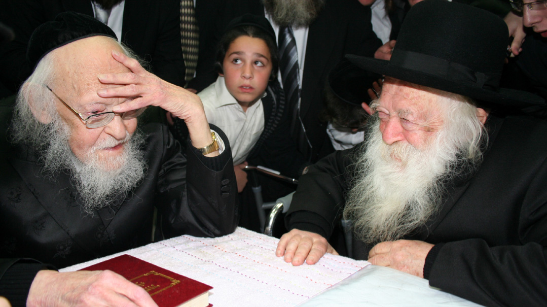 Rav Elyashiv with his esteemed son-in-law. “It would be good to make a shidduch with this person,” the Chazon Ish told Rav Chaim’s mother after Rav Elyashiv sat silently before him