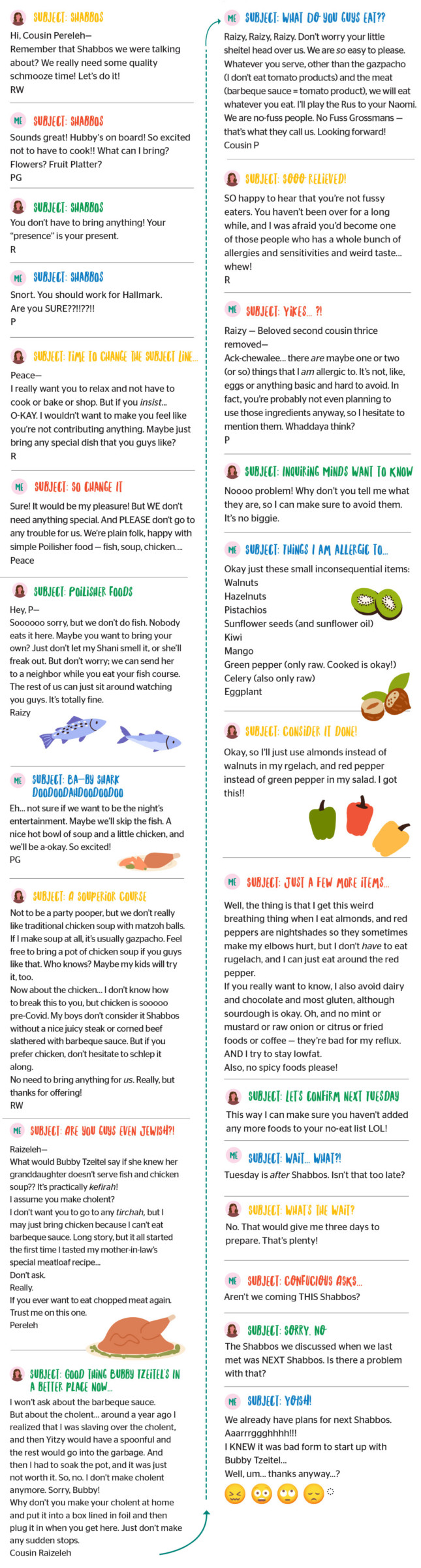 | Sidekick | An Inviting Proposition By Perel Grossman | January 31, 2023 It’s just a simple Shabbos invite — what could go wrong? (Originally featured in Family First, Issue 829) [gravityform id="13" title="false" description="false" ajax="true"] RELATED CONTENT Hadassa SwerdsThe Swerds Circus Goes Airborne This year our flight will be twice as long, and you had better believe that I double- and triple-checked our tickets Hadassa SwerdsMy Son, the Juvenile DelinquentOkaaay. Somebody call the cops. This pack of five-year-olds is clearly up to no good Esty HellerRetail TherapyThe excitement of buying, the relief of returning, and all other packages in between Sarah Moses SperoReady or NotBeing prepared and measuring your moments of attendance at said event means different things to different people, depending on gender, maturity, and flexibility Hadassa SwerdsNo Pets Allowed Warning: Any goldfish my kids bring home are an endangered species Esty HellerName, Rank, and Insurance NumberJust sign here, and here, and here, and here + See all >