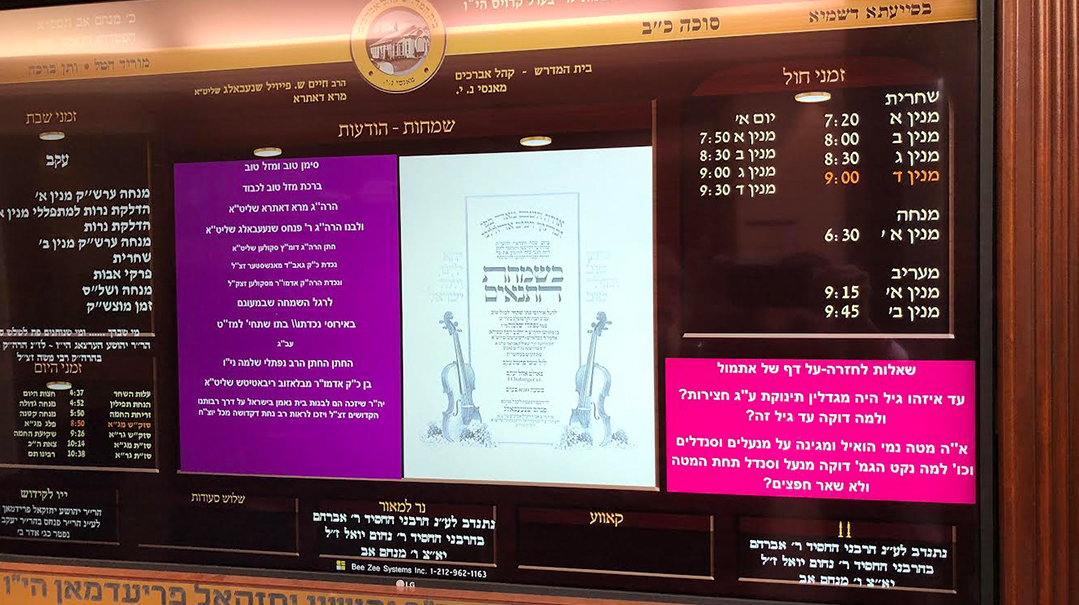 Until what age were children raised on the stone courtyards and why until that age? A question on the daily daf yomi, one of several featured each morning on the digital billboard at Monsey’s Khal Avreichim.