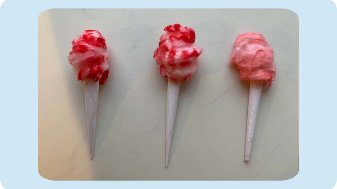 Combine the water with one drop of food coloring. Too much food coloring will make it look red, not cotton-candy pink (been there, done that!).
