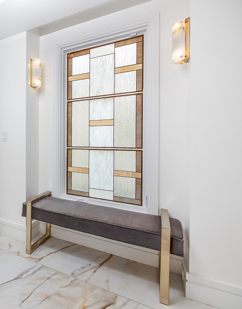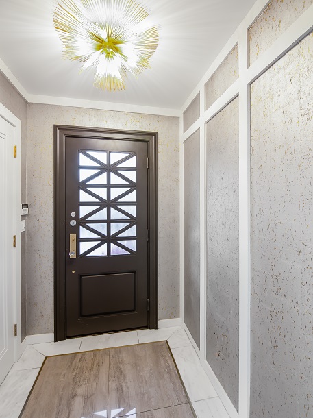 Go with lighter walls to make your space feel larger. Adding a little texture can also do some amazing things. Texture doesn’t have to mean color: for one client with a very small entry, we panelled the walls horizontally and painted them white fora crisp look that didn’t feel cramped. If your vestibule is a nice-sized space, however, you can have a darker wall for a cozy feel. If your budget allows it, adding a high gloss finish to your ceiling like venetian plaster will also open up your space. Shy away from shortcuts for this trick, like using high-gloss paint finish on normal paint, which can highlight any imperfections in your ceiling and cause more harm than good.