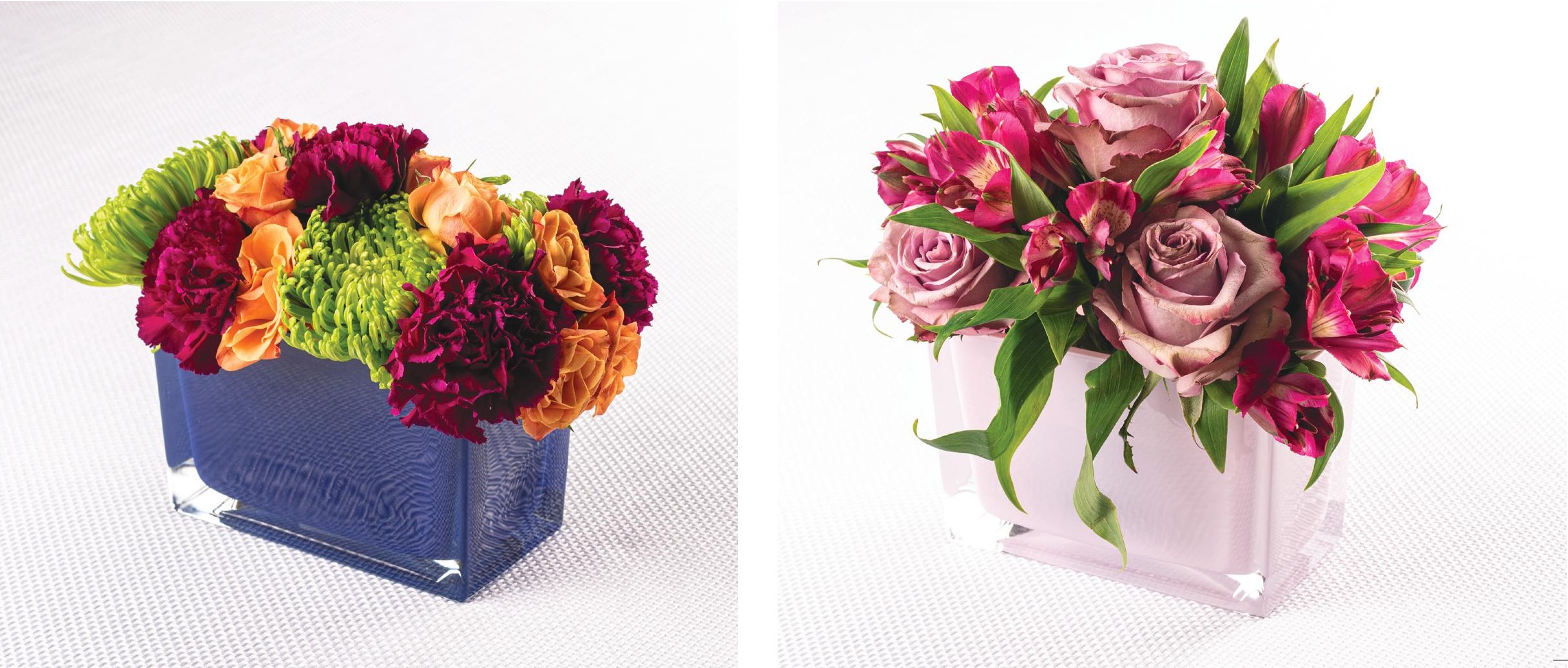 - Flowers in contrasting colors (You can use a combination of carnations and mini roses)