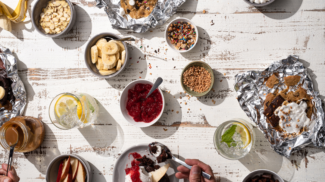 Mix and match elements to create custom desserts, then tightly close foil packets and cook on the grill for 12–18 minutes.