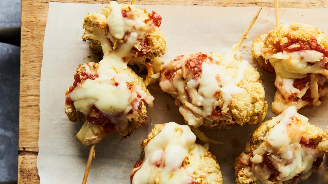For an easier and quicker variation, skip the skewers. Simply toss the roasted cauliflower florets with 1 cup of mozzarella cheese and place in an oven-proof dish. Drizzle with pizza sauce and sprinkle with the additional 1/2 cup cheese. Place into the oven and bake for 15–20 minutes, or until cheese is fully melted.