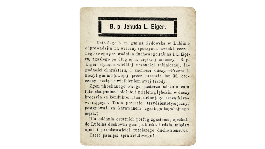 The unusual trajectory of the life of Rav Leibel Eiger (1816–1888) was unforeseen at the outset