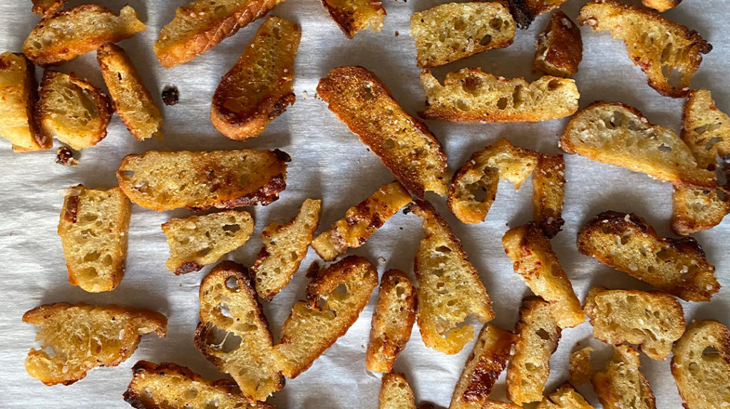 We often get pizza from a place where the pizza has LOTS of crust. And when supper is over, I have a pile of pizza crusts that looks like a pile of bones. I decided to turn it int ...