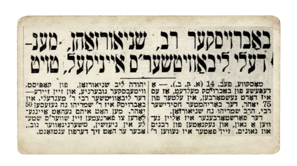 For the Record Tuesday, December 26, 2023 Captain of Kapust Rav Menachem Mendel Schneersohn (1789–1866), brought the town of Lubavitch to prominence as a center of Torah and chassidus