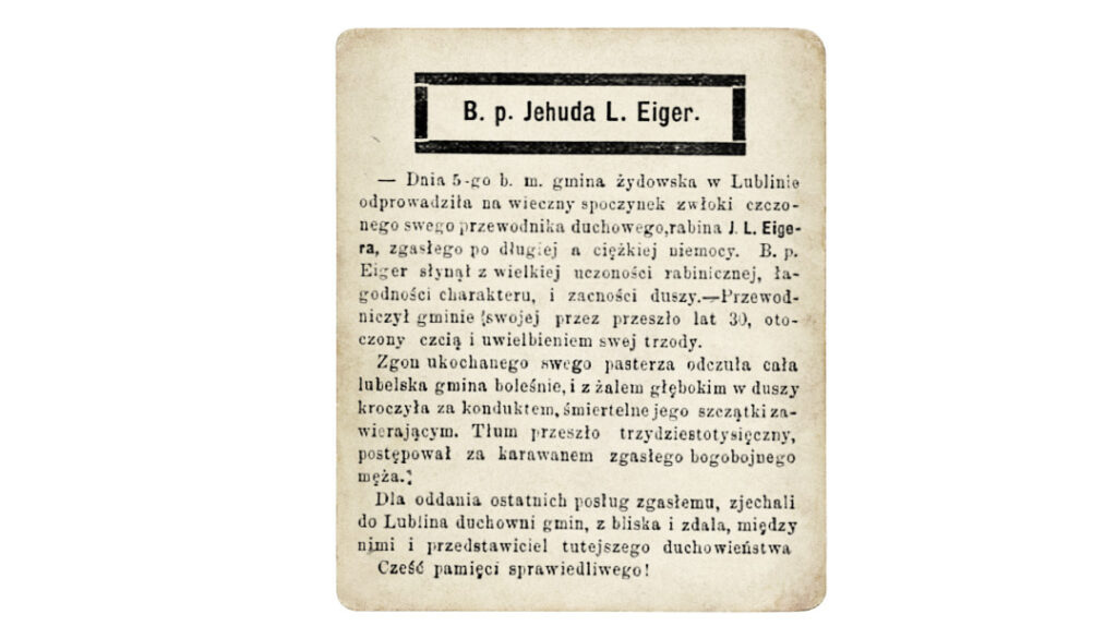 For the Record Tuesday, January 30, 2024 A Chassidic Label for Rav Leibel The unusual trajectory of the life of Rav Leibel Eiger (1816–1888) was unforeseen at the outset