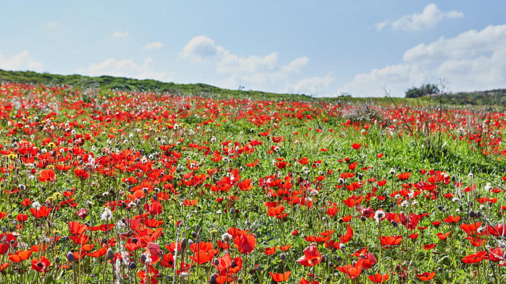 On Site Tuesday, January 27, 2026 Coming Up Roses On Tu B’Shevat, the entire landscape is in bloom after the rains