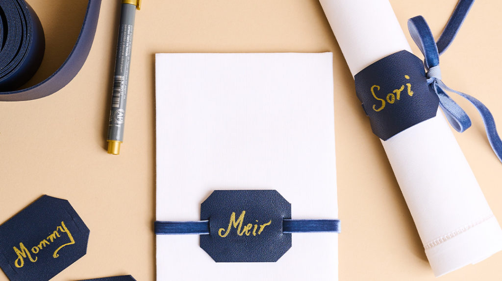 PlateArt Tuesday, March 21, 2023 Name Your Napkin Enhance your Yom Tov table with these classy leather napkin rings/seating cards