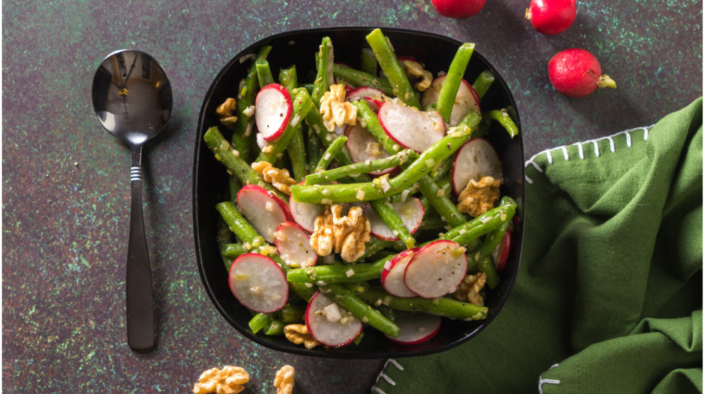 Wednesday, January 08, 2020 Green Bean Radish Salad with Walnut Vinaigrette A tangy salad with crisp green beans, crunchy walnuts, and a great-tasting dressing. Something new for your salad bar.