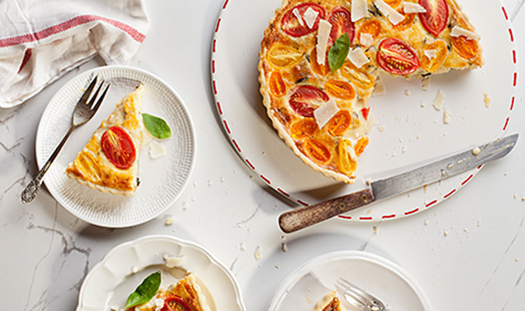 Recipes Wednesday, April 26, 2017 Tomato-Parmesan Quiche From the melt-in-your-mouth crust to the simple yet gourmet-tasting filling, this quiche is set to please.