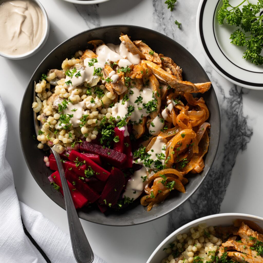 Coated Chicken and Pastrami Balls with Lemon-Basil Dipping Sauce