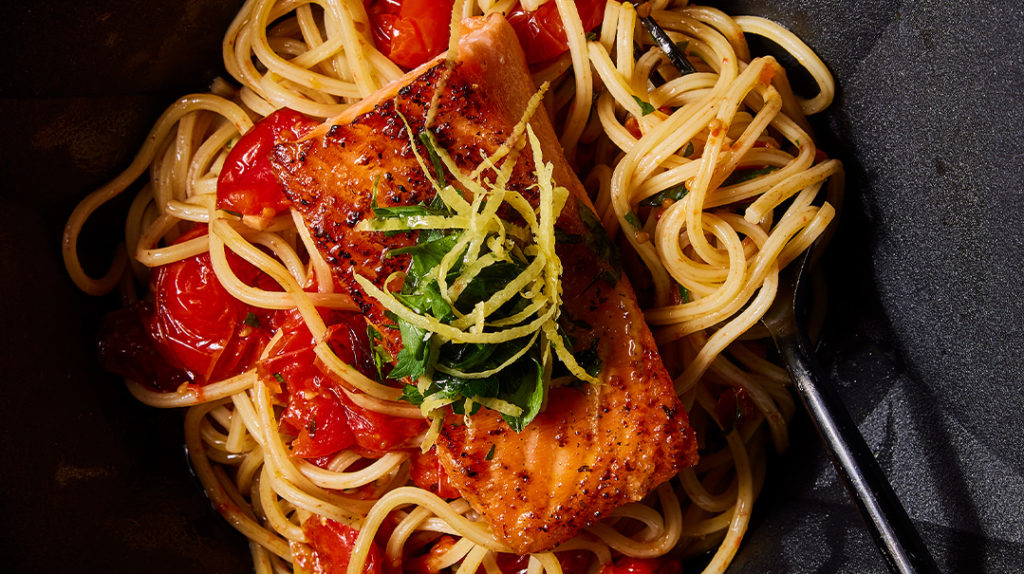 Gourmet Vs. Everyday Tuesday, November 29, 2022 Tomato Confit Pasta with Salmon While most people celebrate Chanukah by frying up all kinds of goodies, I like to do it differently and serve dishes rich with olive oil