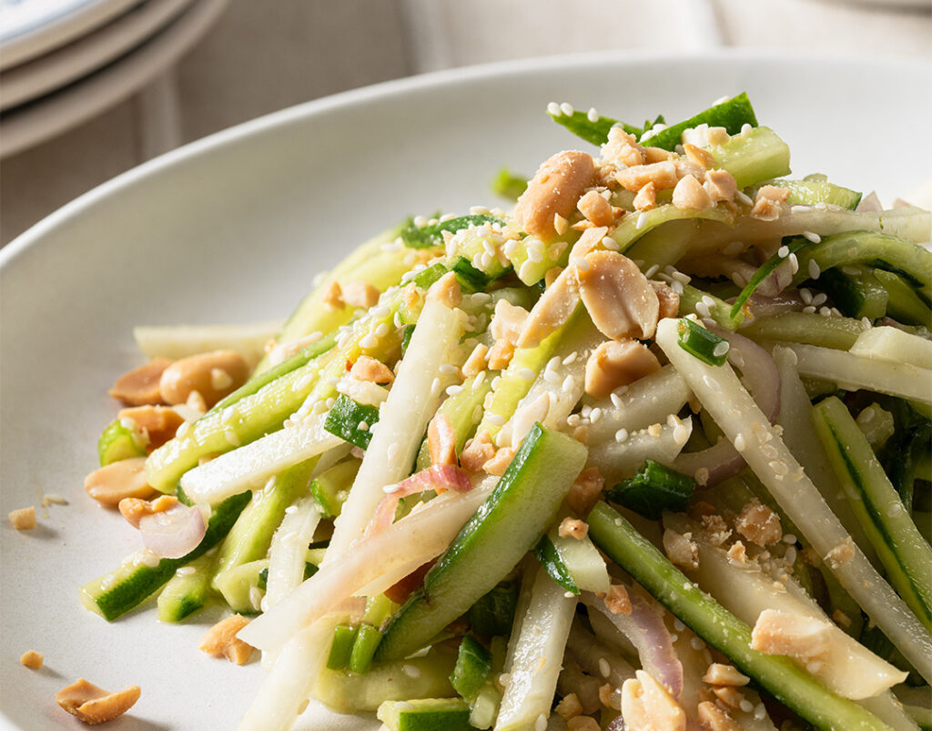 Cucumber Kohlrabi Salad with Peanut Dressing