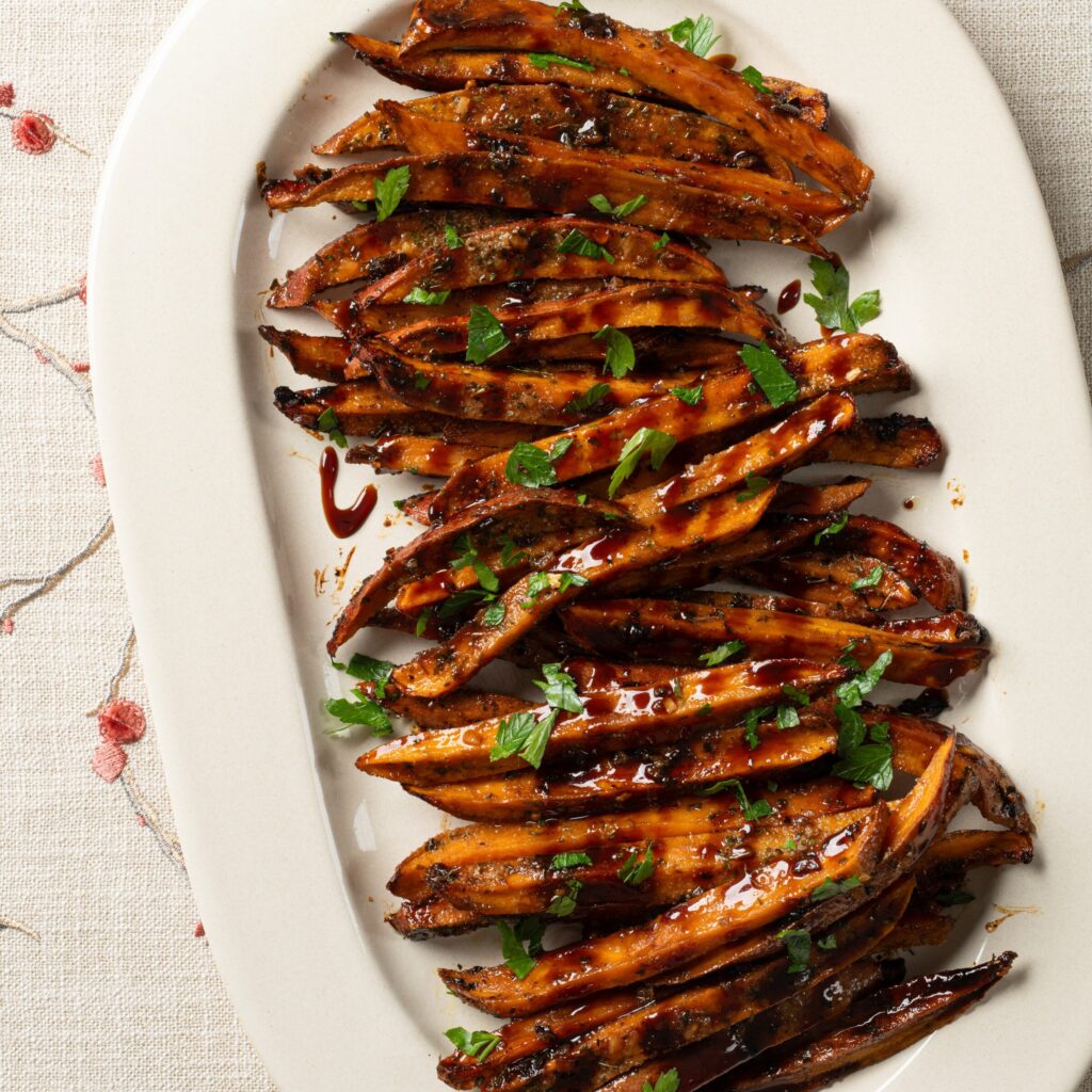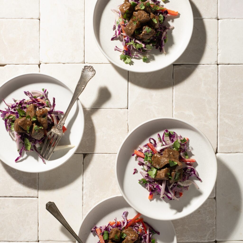 Orange-Glazed London Broil Bites on Jalapeño Slaw