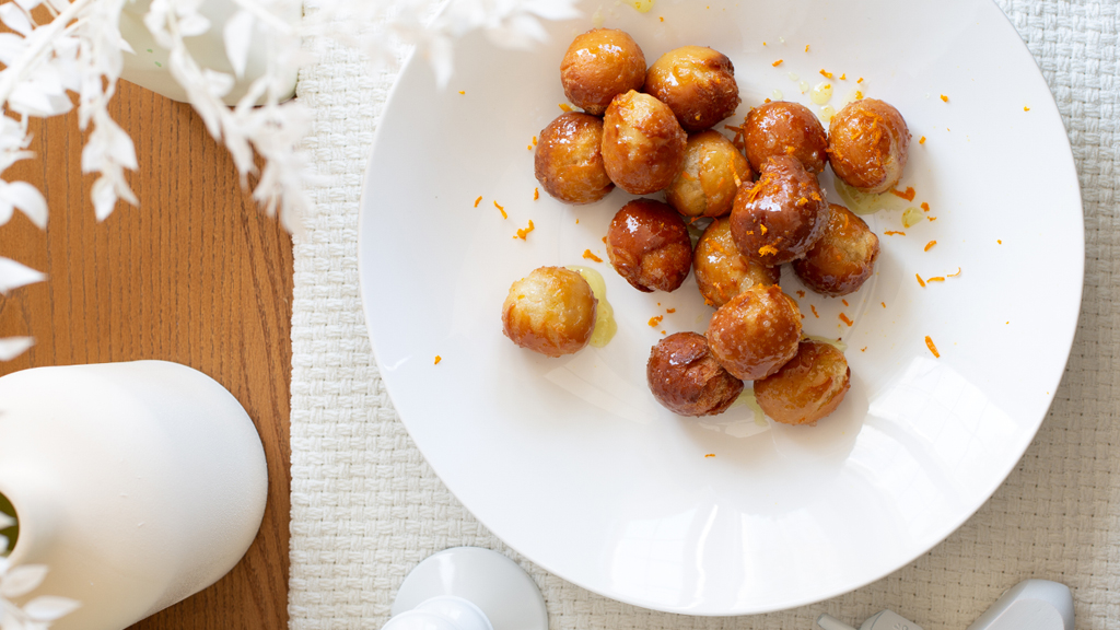 Doughnut Holes with Orange-Vanilla Simple Syrup