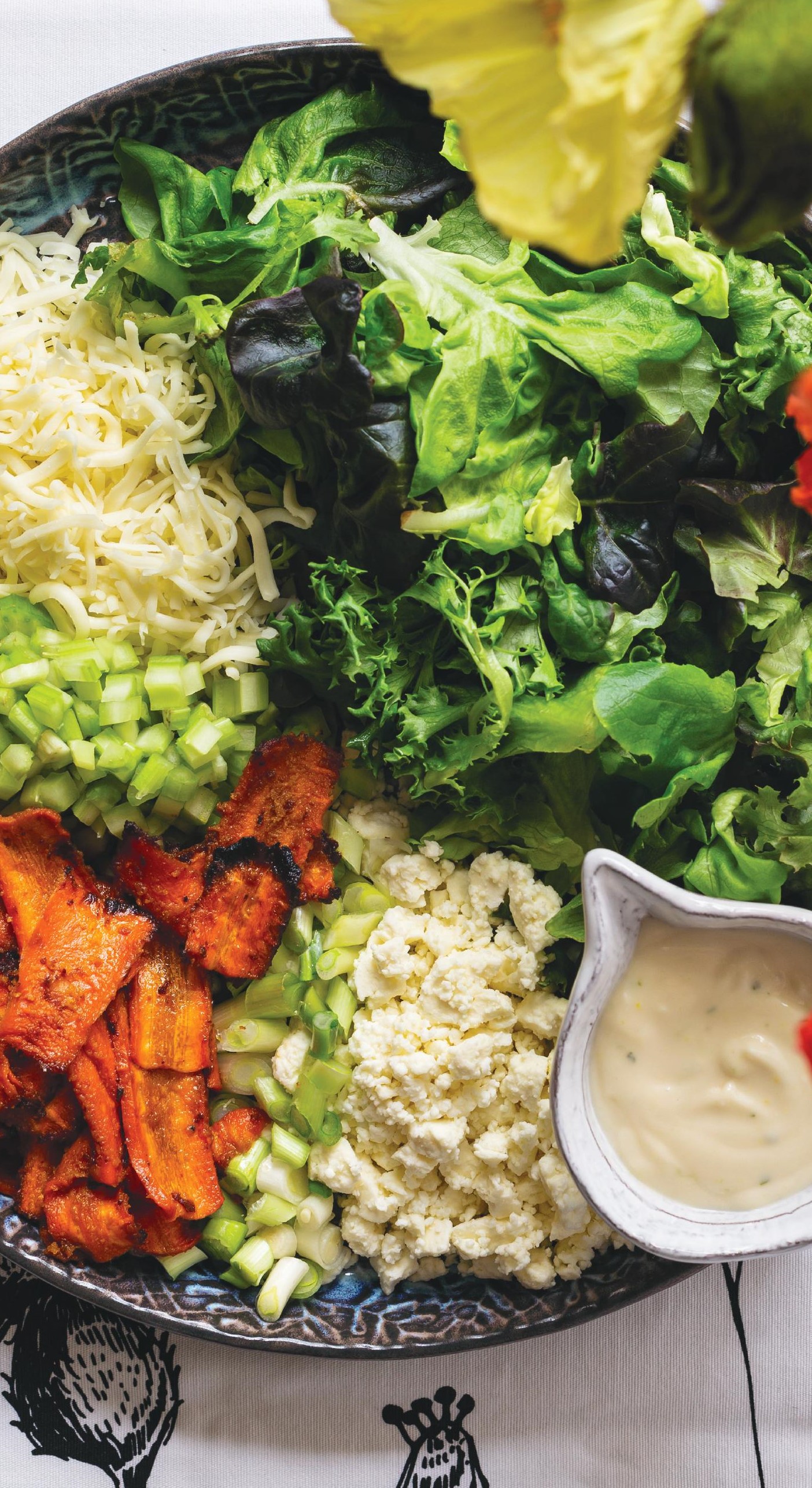 A symphony of textures and flavors to give you the ultimate salad platter for your Yom Tov table. And the dressing uses half dietetic mayo and half yogurt, so it’s good for you as well. Enjoy every bite!