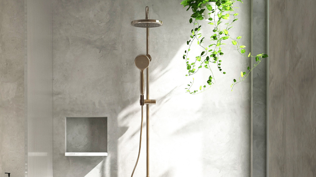 When choosing bathroom fixtures, it’s a good idea to first choose a shower system, and then match all fixtures to the color and style of that system.