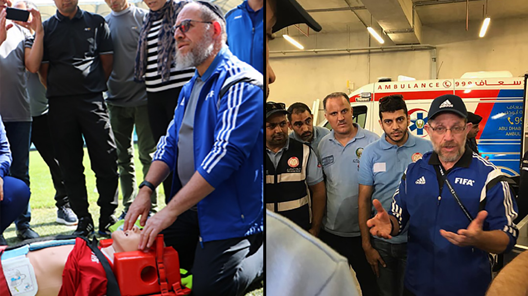 The soccer teams are equipped with their own sport physicians, and the presidents, prime ministers, sheikhs, and other VIPs who attend are often accompanied by cardiologists or a range of other specialists who escort these notables. Responsible for all of them is FIFA’s Chief Medical Officer.