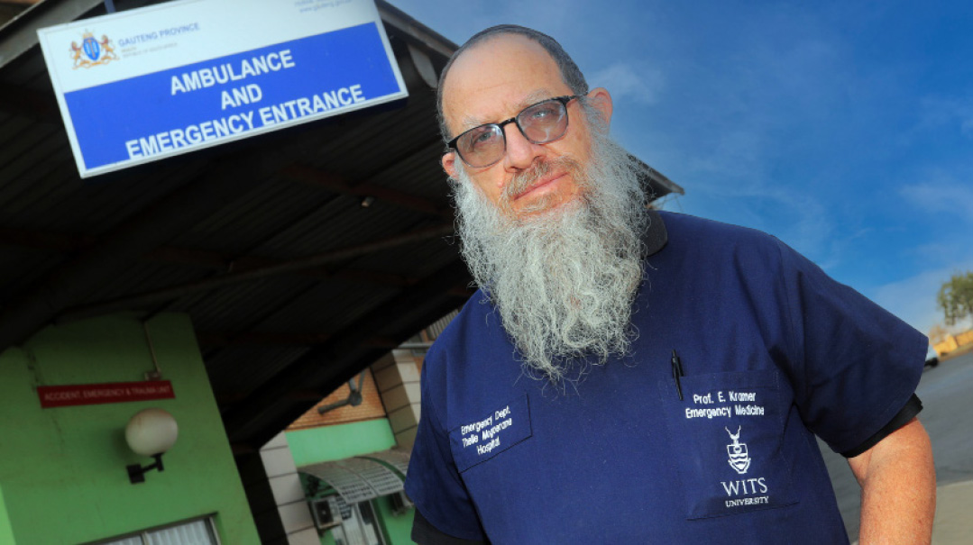 If you’re speaking with Professor Kramer, he’s likely to be interrupted by a phone call from the Thelle Mogoerane Regional Hospital where he is an emergency department specialist. This is a government hospital where there aren’t enough facilities or medical apparatuses to deal with the onslaught of patients. Decisions have to be made every hour concerning newly-admitted patients riddled with bullets, deep knife wounds, fire victims (all common in South Africa), and Professor Kramer will unspool instructions to “amputate,” “unplug,” “intubate,” with the unflinching factual intimacy of a coroner’s report. (Color me astounded, for if I catch a fleeting glimpse of minor surgery at a bris I am ready to faint. Professor Kramer cannot allow himself these puerile responses or it will throw him off his game.)