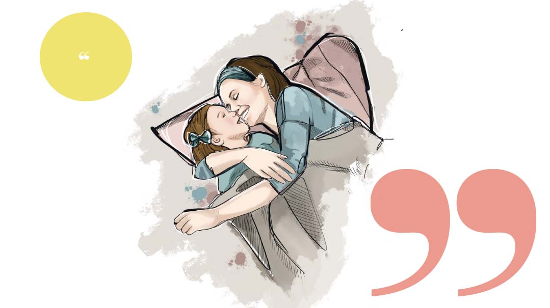 The blanket moved near my head. Little fingers gently patted my neck and a sweet voice started singing softly, “Ai li lu li Mommy, sweety sweety Mommy; ai li lu li Mommy, I love so much my Mommy...”