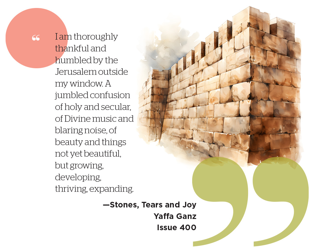 | Flashback | Flashback: Stones, Tears, and Joy, Issue 400 By Yaffa Ganz | August 8, 2023 Stones and Tears and Joy (Originally featured in Family First, Issue 855) [gravityform id="13" title="false" description="false" ajax="true"] RECOMMENDED | Fundamentals |Flashback: Fundamentals, Issue 760Miriam Kosman | Flashback |Flashback: Lifetakes — Chasing Clarity, Issue 759 Toby Schorr | Flashback |Flashback: Editor’s Letter, Issue 608 Bassi Gruen | Flashback |Flashback: Lifetakes — Before and After, Issue 697 P. Diamond | Flashback |Flashback: Lifetakes — The First Day, Issue 456Shoshana Itzkowitz | Family First Editor's Letter |Flashback: Editor’s Letter, Issue 788Bassi Gruen RELATED CONTENT Bassi GruenFlashback: Editor’s Letter, Issue 717 Faigy PeritzmanFlashback: Parshah, Issue 620 Sarah Moses SperoFlashback: Musings, Issue 669 Miriam AflaloFlashback: Parshah, Issue 389 Faigy PeritzmanFlashback: Parshah — To Capture the Flag, Issue 843 Toby SchorrFlashback: Lifetakes — Chasing Clarity, Issue 759 + See all >