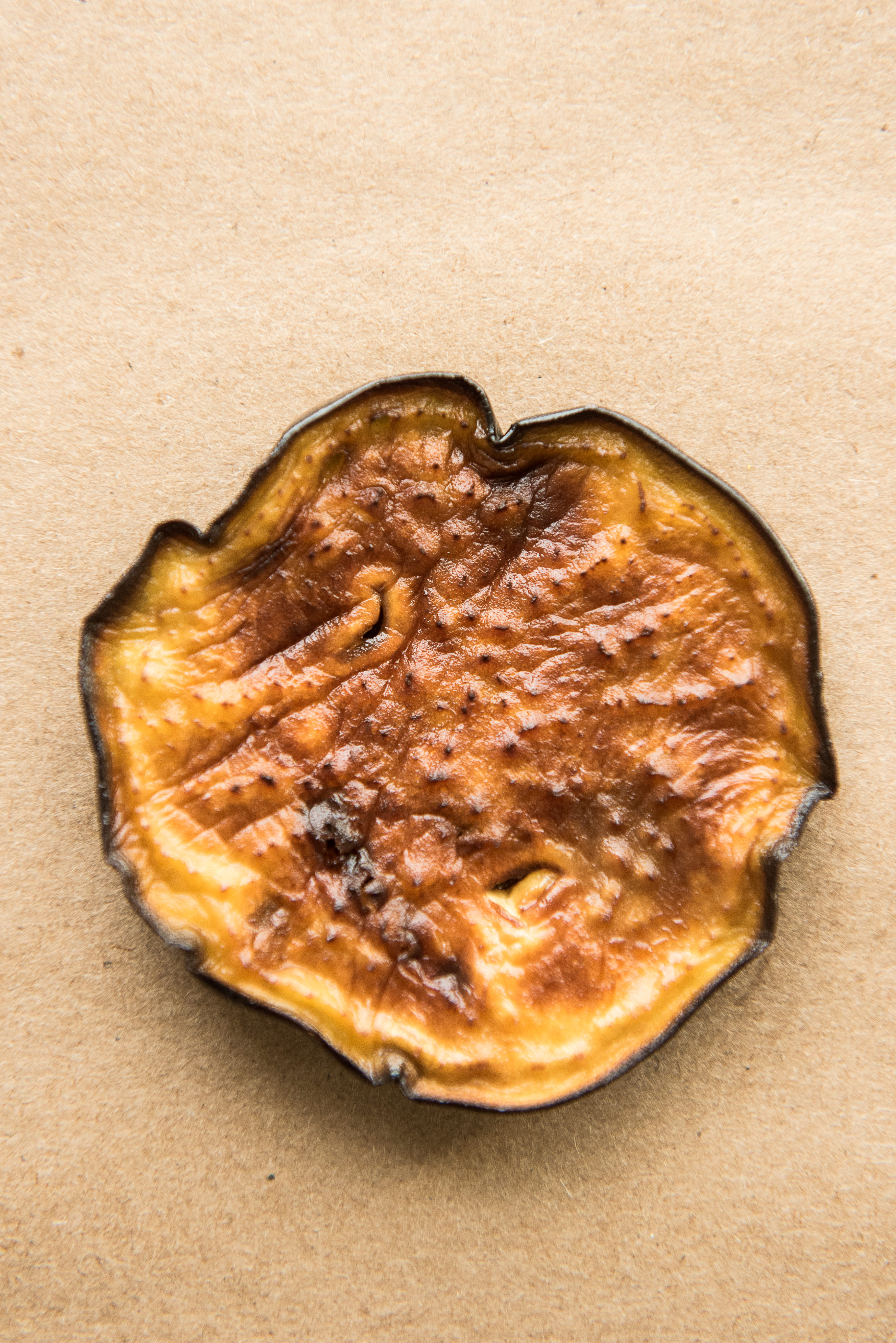 Cut eggplant into rounds, sprinkle generously with kosher salt, and allow to rest in a colander for at least 60 minutes. Pat dry.