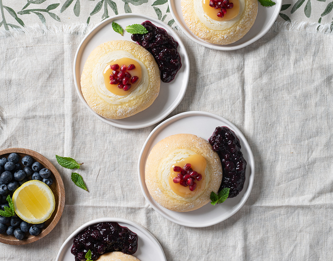 Containing all the flavors you love, these giant cookies are bursting with lemony goodness and can be enjoyed with this easy, fresh blueberry sauce for a delightful finale to your Shavuos seudah.