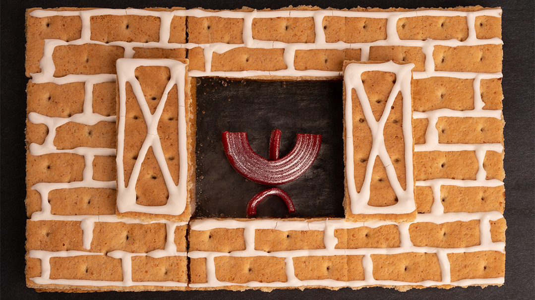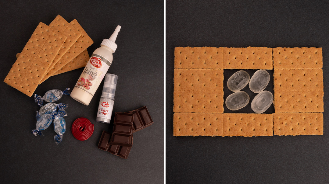 The window is made up of two layers. Divide the cut-up crackers in half so you have one set for each layer. Set aside one set of crackers.