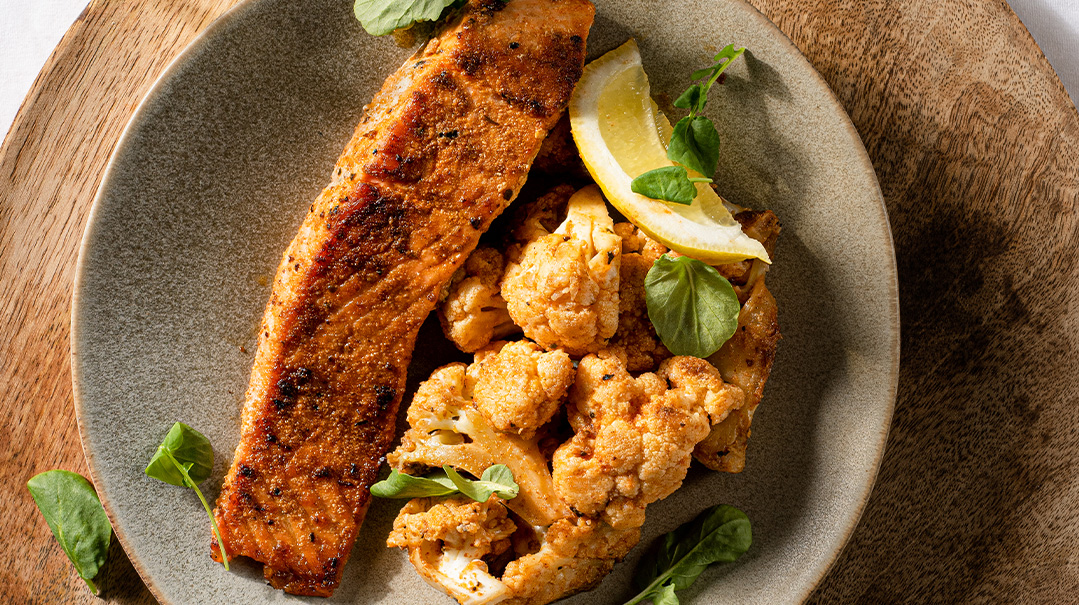 Divide salmon and cauliflower evenly between 2–3 plates and enjoy.