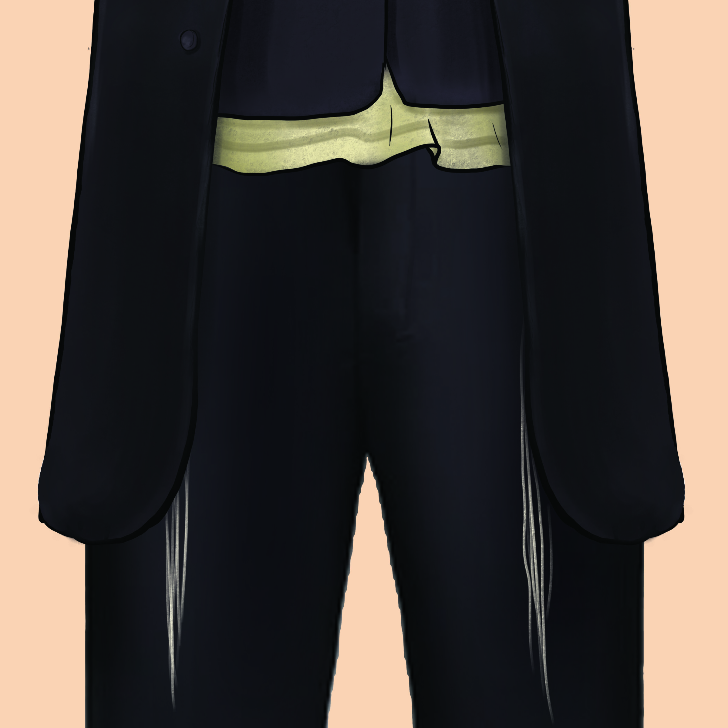 To put on the costume, first put on the middle box (the torso) by pulling it over the costume wearer’s head. Next, put on the bottom box, then attach it to the middle box using the Velcro strips. Finally slip the top box over the costume wearer’s head. To sit, remove the bottom box by opening the “door” at the waist using the Velcro strips.