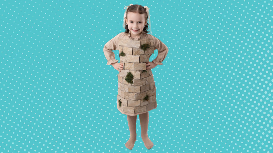 This mix-and-match costume is best for people who are walking around over Purim and not constantly in and out of a vehicle. Though it’s not very hard to take on and off, it’s easier to do it with a second person, and it takes a full minute. That said, this costume is an engaging and fun way to express the feelings we all deeply share.