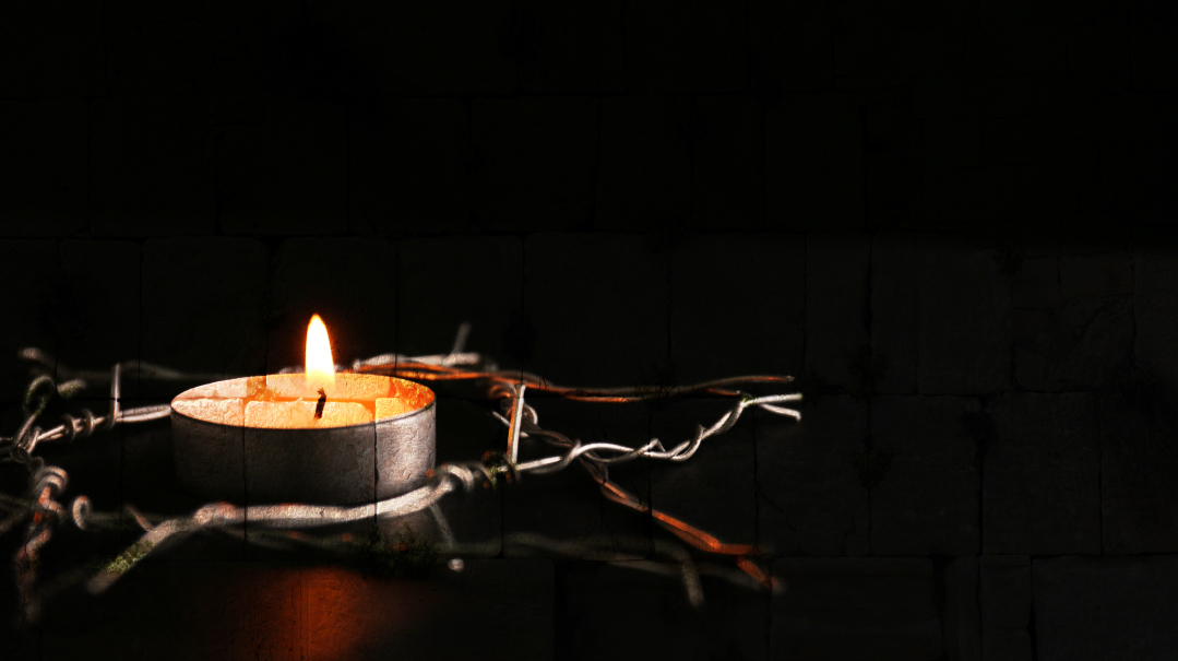 Opening the door to the kosher cafeteria, the scene I saw added to the twilight zone feeling I’d had walking up the path. The lights were off, the room lit solely by a trio of candles flickering on the floor. A circle of students huddled around the candles. In hushed voices, they took turns reading names of those who’d perished in the Holocaust.