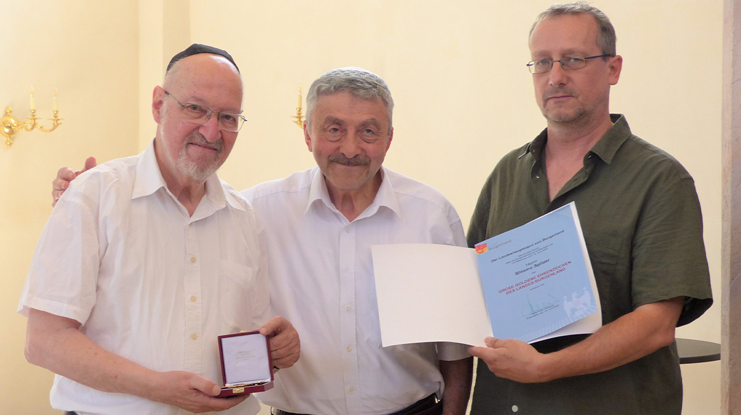 (L-R) Professor Shlomo Spitzer and Nechemja Gang, two men who’ve devoted their lives to preserving the memory of Austria’s Jewish past, together with Dieter Szorger