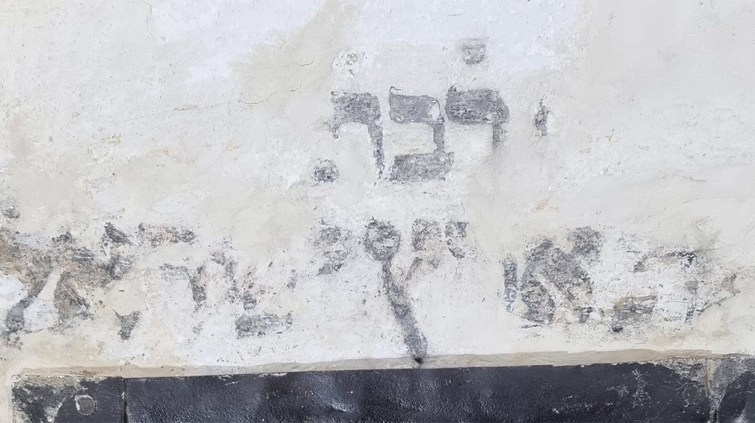 Amazingly, when the workmen cleaned the mold and layers of old paint off the walls, bits of the original inscriptions could still be seen. Those entering the building in 1860 were greeted by the words “Baruch Habaah B’Shem Hashem,” words of welcome that remained, revealed now from under the peeling paint.