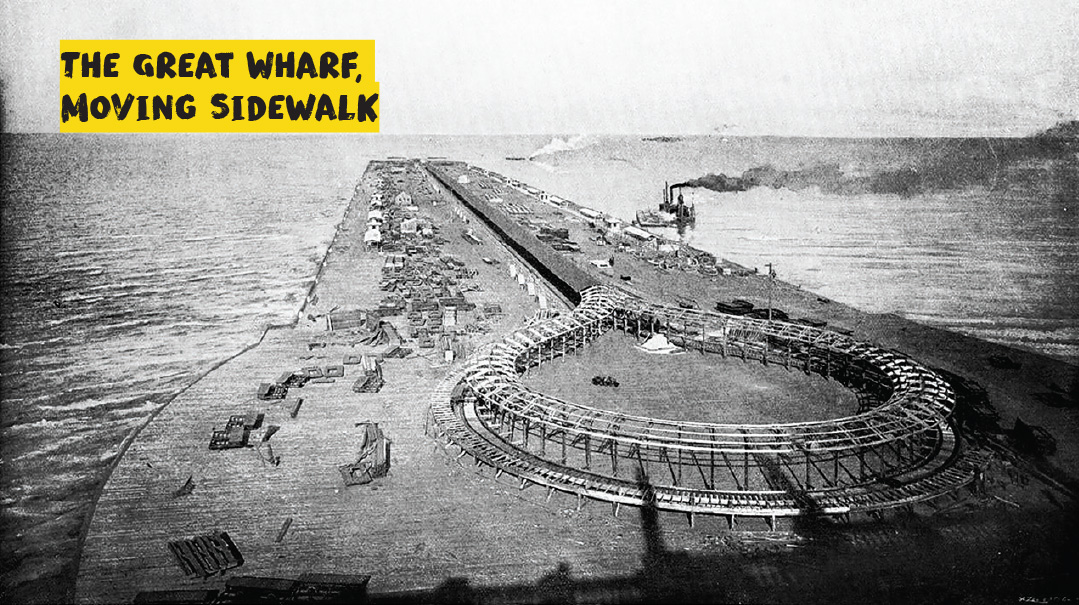 In 1871, inventor Alfred Speer dreamed of a world where the walking was done for you. His vision included sidewalks that had not one, but three moving walkways. Each walkway would move at a different speed. If you wanted to enjoy the weather, you could glide along at a comfortable 3 miles per hour on the slowest walkway. If you were in a hurry, you’d obviously go for the fastest walkway. The walkways would have benches every so often so you could rest your poor feet that were exhausted from, you know, walking so much. And if you’re already transforming the street so radically, why not go crazy and add a train? Well, that’s exactly what Speer did. By 1874, Speer’s imagination had gone wild and he wanted to enclose moving “parlor cars” alongside the walkways, where women could sit and schmooze, and men could sit and smoke cigars.