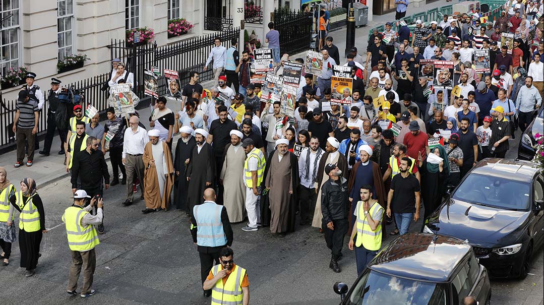 “Nazim Ali on the megaphone spewed out hate,” Collier reported. “All manner of antisemitic conspiracy was shouted out through the speakers. The BBC are silenced through the power of Zionists, Israel is ISIS. By a country mile the most despicable attack was linking the ‘Zionists’ (read Jews) to the recent tragedy in Grenfell [a 2017 London high-rise fire that killed 72]. An entire tower block reduced to ashes, and clearly the fault of the Jews. The police did nothing. When asked about some of the hate being spewed: ‘It’s an opinion,’ one said.”