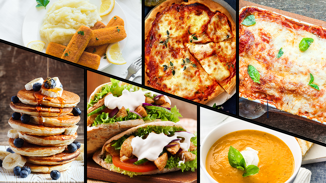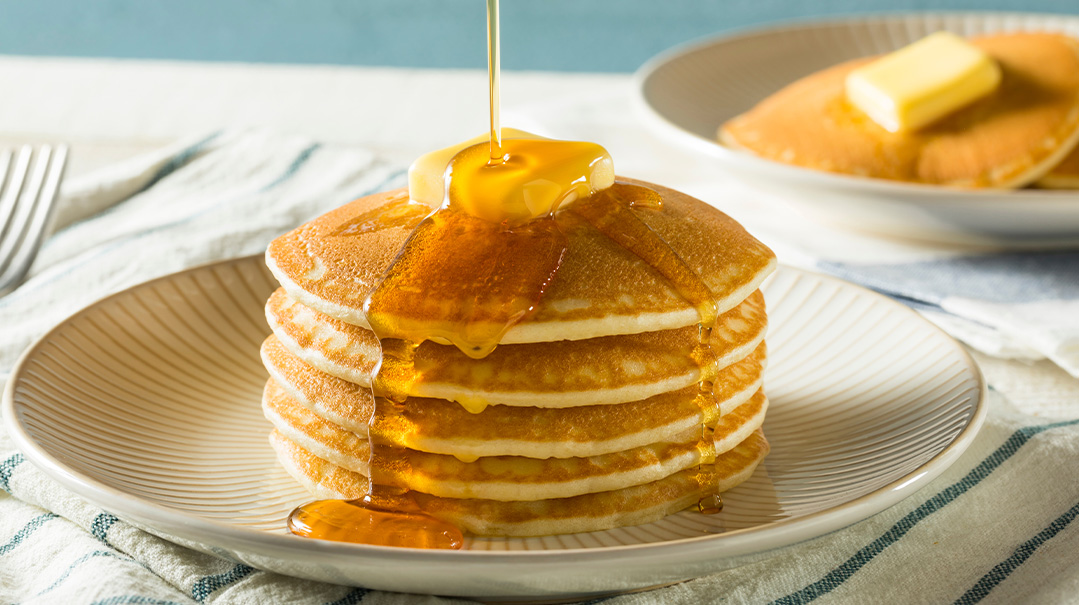 Scrambled eggs and bagels, or pancakes and French toast.
