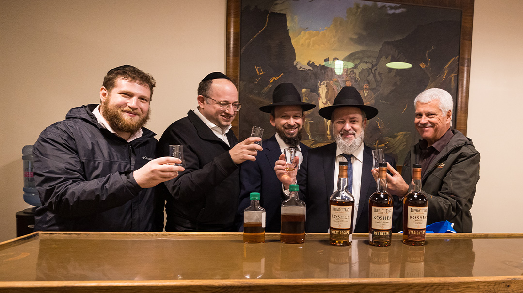 So why are Sazerac CEO Mark Brown and master blender Drew Mayville meeting with Rabbi Sholem Fishbane and Rabbi Akiva Niehaus from Chicago’s cRc today?