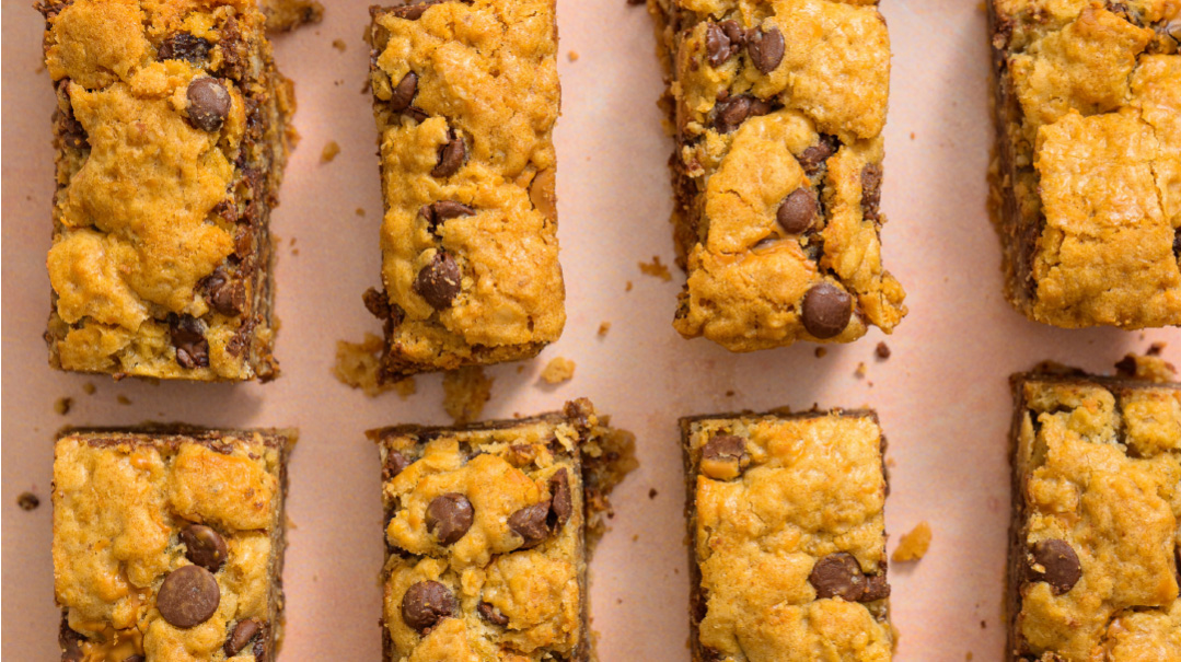 Bake on the center rack for 35 minutes. Remove the pan from the oven and slice into bars.