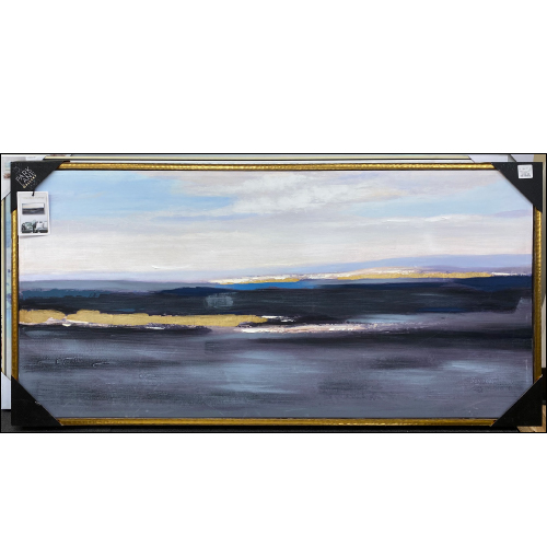 This abstract piece has a dramatic palette and movement, and would work well in a formal space like a dining or living room.