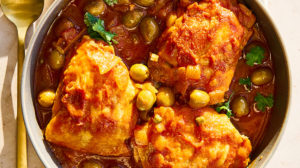 This is a great dish to make for Tu B’Shevat, thanks to the olives that are part of the Shivas Haminim!