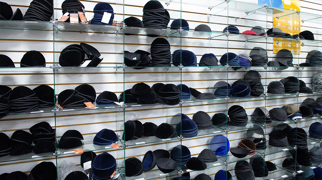 Keter is getting a lot of yarmulke orders for the current look of embroidered symmetrical lines. Purim time, embroidered words are especially popular, with slogans like “Make America Great Again,” or Shishah Sidrei Mishnah on each section of the yarmulke for a proud talmid learning Mishnayos. While the bestselling yarmulke is still black velvet, these products are available in hundreds of styles, sizes, and materials. It varies by age — kids and cool teens wear the super-funky yarmulkes (think: orange and neon-colored) — and location: Keter’s Lakewood store sells a lot more fashion yarmulkes than the Williamsburg store, which sells virtually zero. Regardless of color or design, all Keter yarmulkes have a hechsher — they’re made of linen, wool, cotton, or other reprocessed materials, which can present big shatnez questions, so a shatnez lab checks each shipment.