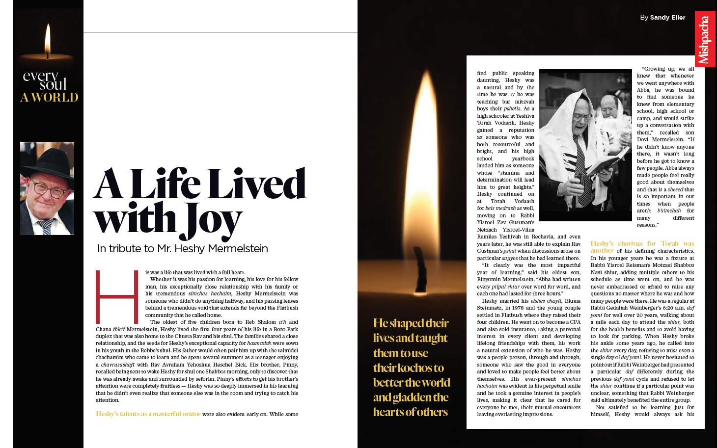 Whether it was his passion for learning, his love for his fellow man, his exceptionally close relationship with his family or his tremendous simchas hachaim, Heshy Mermelstein was someone who didn’t do anything halfway, and his passing leaves behind a tremendous void that extends far beyond the Flatbush community that he called home.
