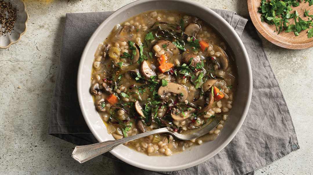 When I created this recipe, I knew I wanted it to include a variety of mushrooms, including some interesting ones, and just enough barley to thicken the soup and make it stew-like, but not more.